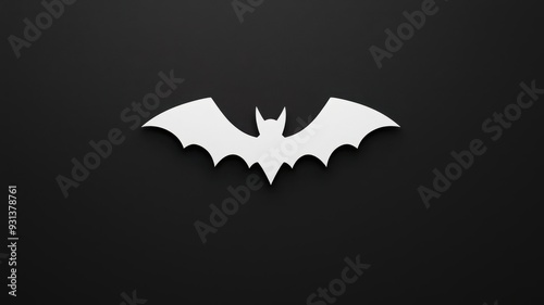 © Navaporn, Fototapeta premium Minimalist bat icon with sharp wings and clean lines, centered on a plain black background, evoking Halloween spirit