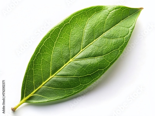 © Arnada, Obraz premium Minimalist Bay Leaf Herb on White Background - Isolated Stock Photo
