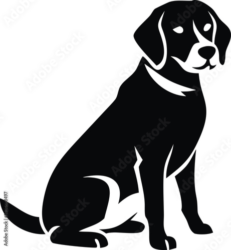 Fototapeta premium Minimalist Beagle Dog Silhouette - Black & White Vector Art for Pet Logos