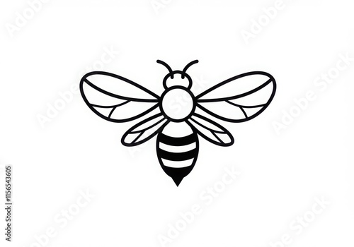 Obraz premium Minimalist bee icon, black and white line drawing, simple geometric shapes,...
