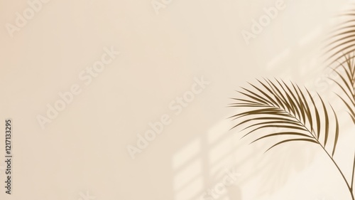 Naklejka premium Minimalist Beige Background with Palm Frond and Shadow