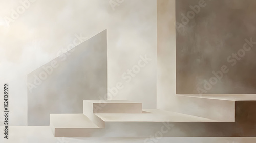 Obraz premium Minimalist Beige Plaster Composition, soft gradients, few elements, off-white...