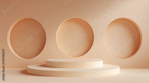 © ronal, Fototapeta premium Minimalist beige podium display, empty stage for product presentation