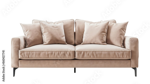 © The Stock Guy, Fototapeta premium Minimalist beige sofa with cozy pillows. Modern living room interior concept, isolated on transparent background