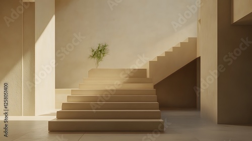 Fototapeta premium Minimalist Beige Staircase Architecture Interior Design