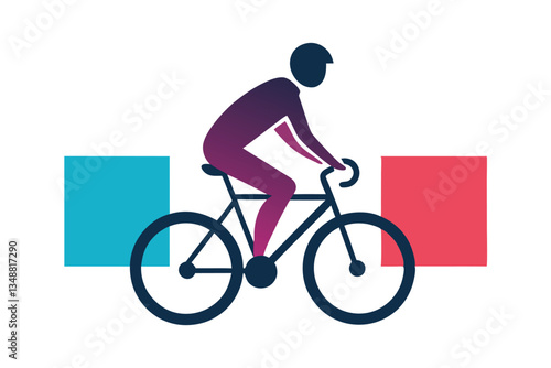 © Jannatul, Fototapeta premium Minimalist Bicyclist Art Stylized Gradient Cyclist with Geometric Shapes Around Figure