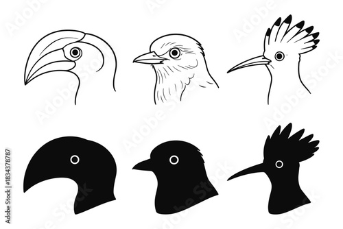 Fototapeta premium Minimalist bird profiles in silhouette and line art style