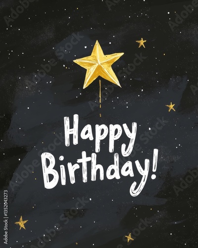 © Sofia, Naklejka premium Minimalist birthday postcard with white Happy Birthday on dark background