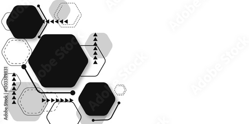 Fototapeta premium Minimalist Black and Gray Honeycomb Technology Pattern. Abstract...