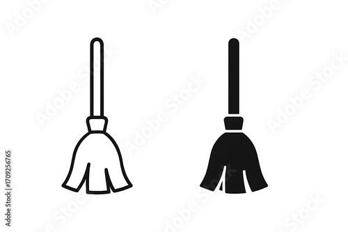 Naklejka premium Minimalist Black and White Broom Illustration for Efficient Cleaning and...