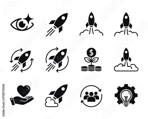 Naklejka premium Minimalist Black and White Business and Success Icons