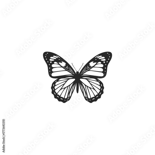 Fototapeta premium Minimalist Black and White Butterfly Vector Illustration.