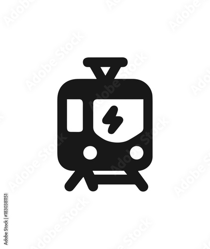 Fototapeta premium Minimalist Black and White Electric Train Public Transportation Icon Design