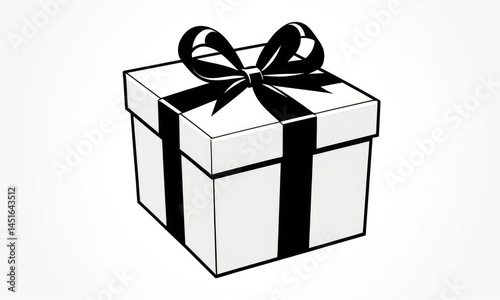 Fototapeta premium Minimalist black and white gift box with bow on clean background