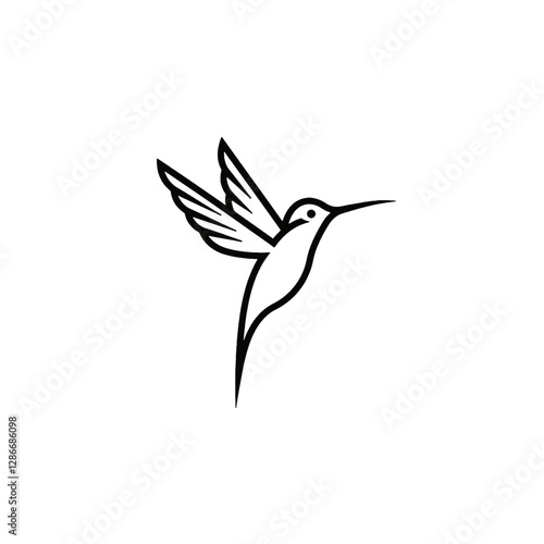 © isuru, Obraz premium Minimalist Black And White Hummingbird Outline Artwork With A Clean Design