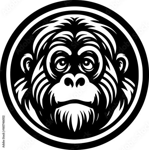Fototapeta premium Minimalist black and white orangutan icon with clean lines. Modern, scalable design perfect for logos, stickers, or digital use.
