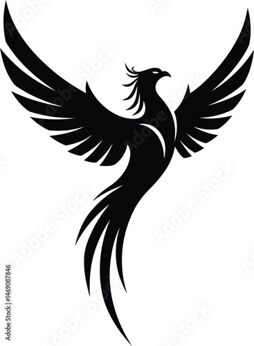 © Tharindu, Obraz premium Minimalist Black and White Phoenix Vector