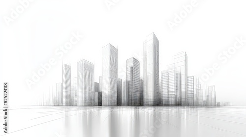 © Lamina, Naklejka premium Minimalist black and white sketch of a city skyline with tall buildings.