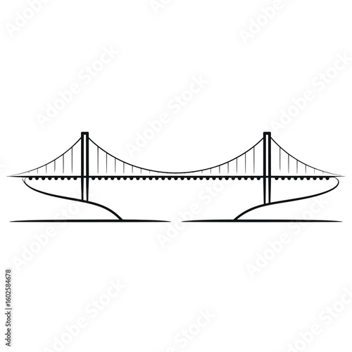 Fototapeta premium Minimalist Black and White Suspension Bridge Illustration on White Background
