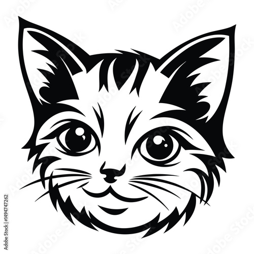 Obraz premium Minimalist Black and White Vector Illustration of a Cat's Face on White...