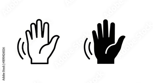 © Space Priest, Obraz premium Minimalist black and white waving hand icons with motion lines