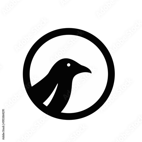 © Alpha Vector, Fototapeta premium Minimalist Black Bird Silhouette Logo Inside a Bold Circular Frame Icon