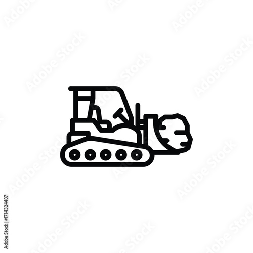 © dony, Naklejka premium Minimalist Black Bulldozer Icon on White Background