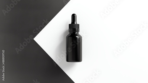 Fototapeta premium Minimalist black dropper bottle on black and white geometric background,...