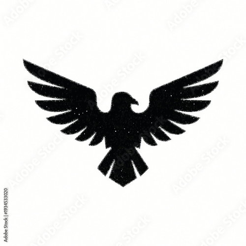 © MS, Fototapeta premium Minimalist Black Eagle Silhouette with Spread Wings on White Background