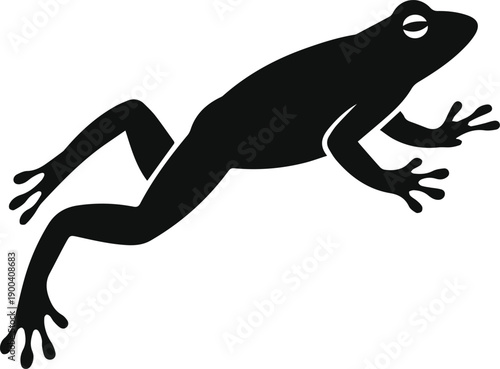 © Vector.com, Obraz premium Minimalist black frog leaping forward silhouette vector icon