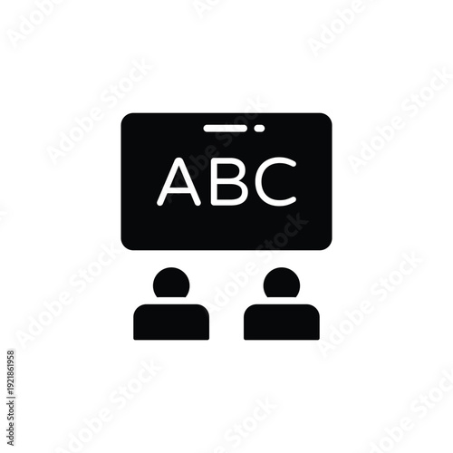 Obraz premium Minimalist Black Icon of a Blackboard with ABC and Two Students, Representing...