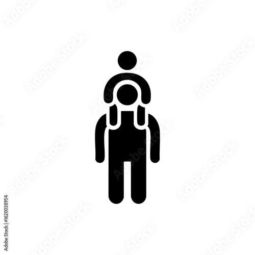 Fototapeta premium Minimalist black icon of a parent carrying a child on their shoulders,...