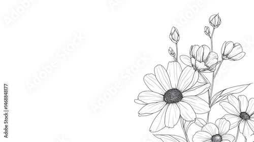 © Mahi, Naklejka premium Minimalist Black Line Art of Various Flowers (Daisy, Sunflower, Orchid)