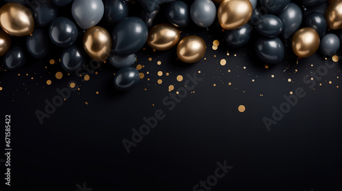 Fototapeta premium minimalist black party background with a black and golden ballons with empty copy space