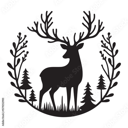 Obraz premium Minimalist Black Reindeer Silhouette with Large Antlers