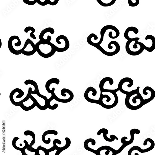 Fototapeta premium Minimalist black scroll patterns on a white background in a seamless,...