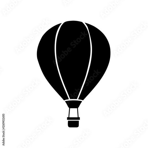 Naklejka premium Minimalist black silhouette of a hot air balloon with vertical lines on white...