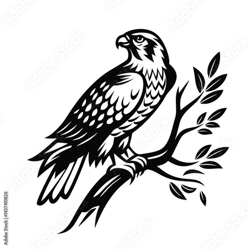 © Shipon, Fototapeta premium Minimalist Black Silhouette of an Eagle Perched on a Branch on White Background