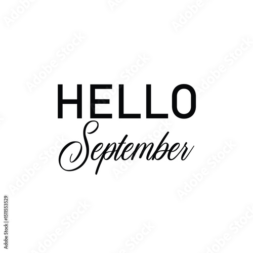 © Faizal, Fototapeta premium Minimalist black text design reading "HELLO September" with a combination of bold and cursive fonts. Perfect for New Year greetings, calendars, and seasonal content for January in a clean layout.