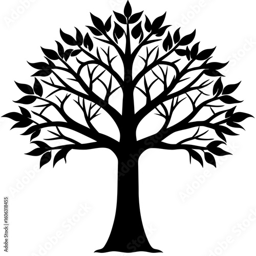 © Smritika, Fototapeta premium Minimalist Black Tree Silhouette with Leaves