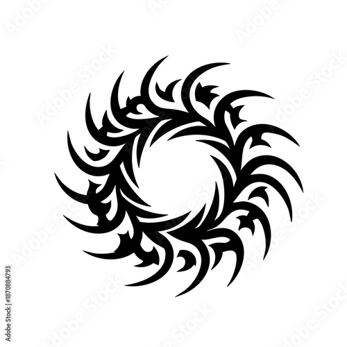 Obraz premium Minimalist Black Tribal Sun Circle Ornament Decoration Symbol Graphic Element