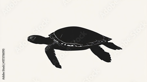 © Pannin, Obraz premium Minimalist black turtle silhouette on a white background, representing steady and enduring ideas.