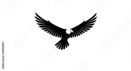 © abida ahmad, Obraz premium "Minimalist black vector illustration of a flying eagle with wings fully spread"