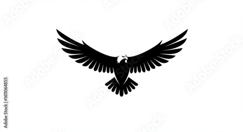© abida ahmad, Obraz premium "Minimalist black vector illustration of a flying eagle with wings fully spread"