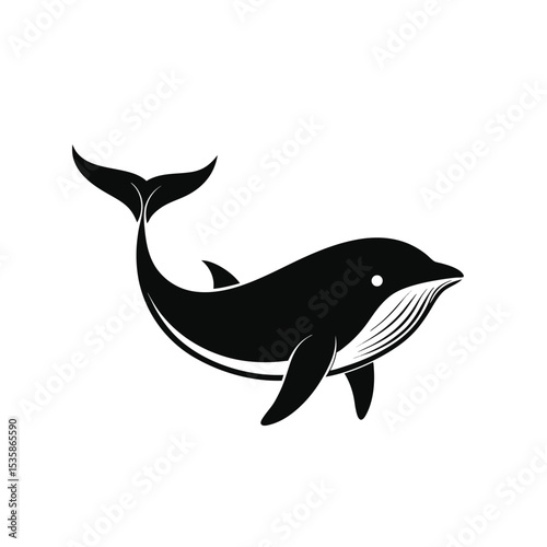 © shanto, Fototapeta premium Minimalist Black Whale Vector Silhouette | Cute Marine Mammal Icon | Ocean Life Animal Graphic Design