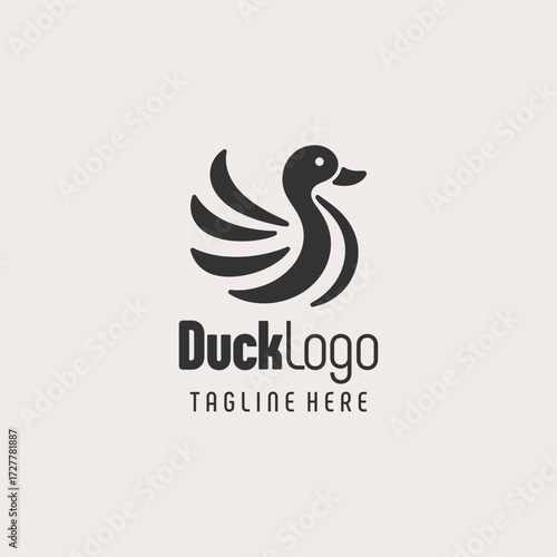 © DzgnVibe, Fototapeta premium Minimalist Black White Duck Drawing