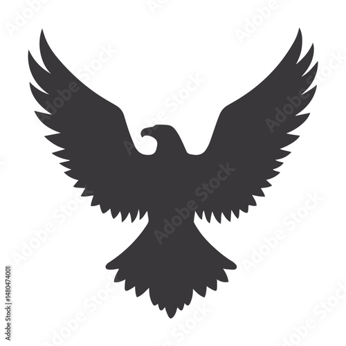 © rratry, Obraz premium Minimalist Black & White Eagle Silhouette with Spread Wings