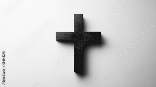 Naklejka premium Minimalist Black Wooden Cross on a Bright White Background Emphasizing Faith,...