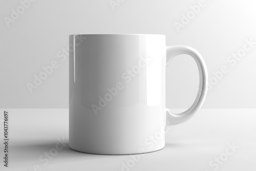 Fototapeta premium Minimalist Blank Mug Mockup on Clean White Desktop with Soft Light Background