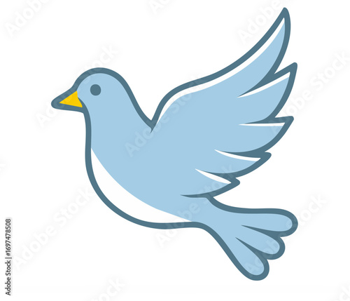 © Вадим Ливандівський, Obraz premium Minimalist blue bird flying illustration with spread wings, symbolizing peace and freedom